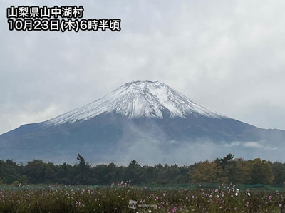 23日に甲府地方気象台より富士山初冠雪の発表が有りました。平年より21日遅く、昨年より15日早い観測だそうです。