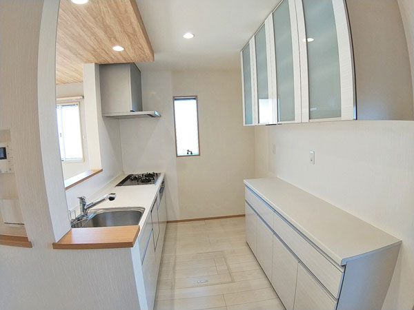 築9年の再生住宅、築浅の綺麗な一戸建。6帖大の広いルーフバルコニー、駐車場2台(増設可)。2026年1月に内装リフォーム済。壁紙もすべて貼り替えましたので、室内は大変綺麗です。キッチン近くにパントリー、洗面にはリネン棚も有り、家事収納もスッキリ。床暖房付のゆとりあるLDK18帖、対面キッチンで家族も団欒。